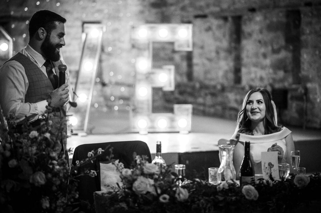 With a venue like Lyde Court, the reception in the Great Barn is very much a highlight. The inside of the barn is stunning and the tables are laid out banquet style, which is a really sociable way to do it.